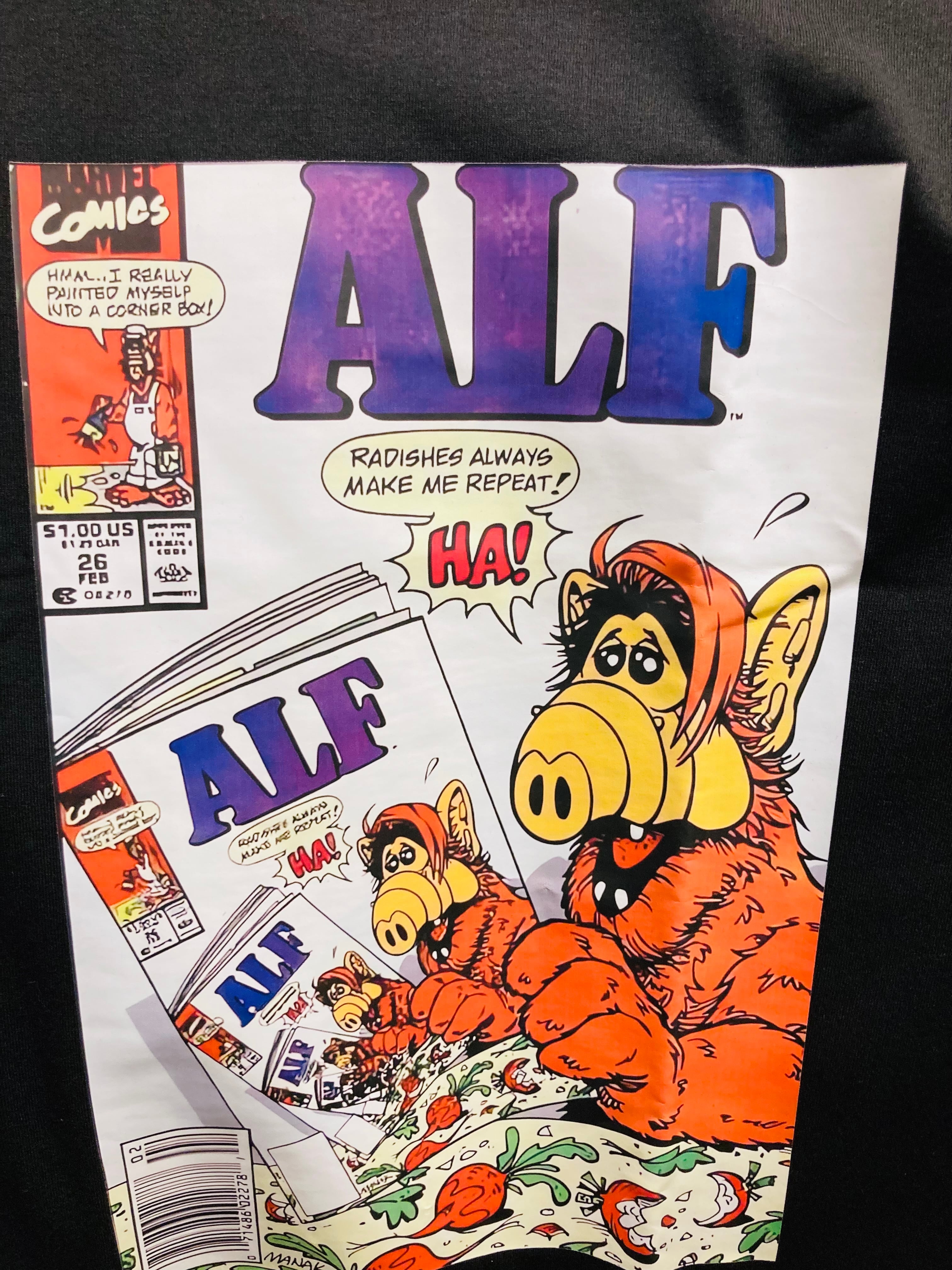 人気海外コメディドラマ『アルフ』がコミックブックカバー風のデザインになったTシャツです。