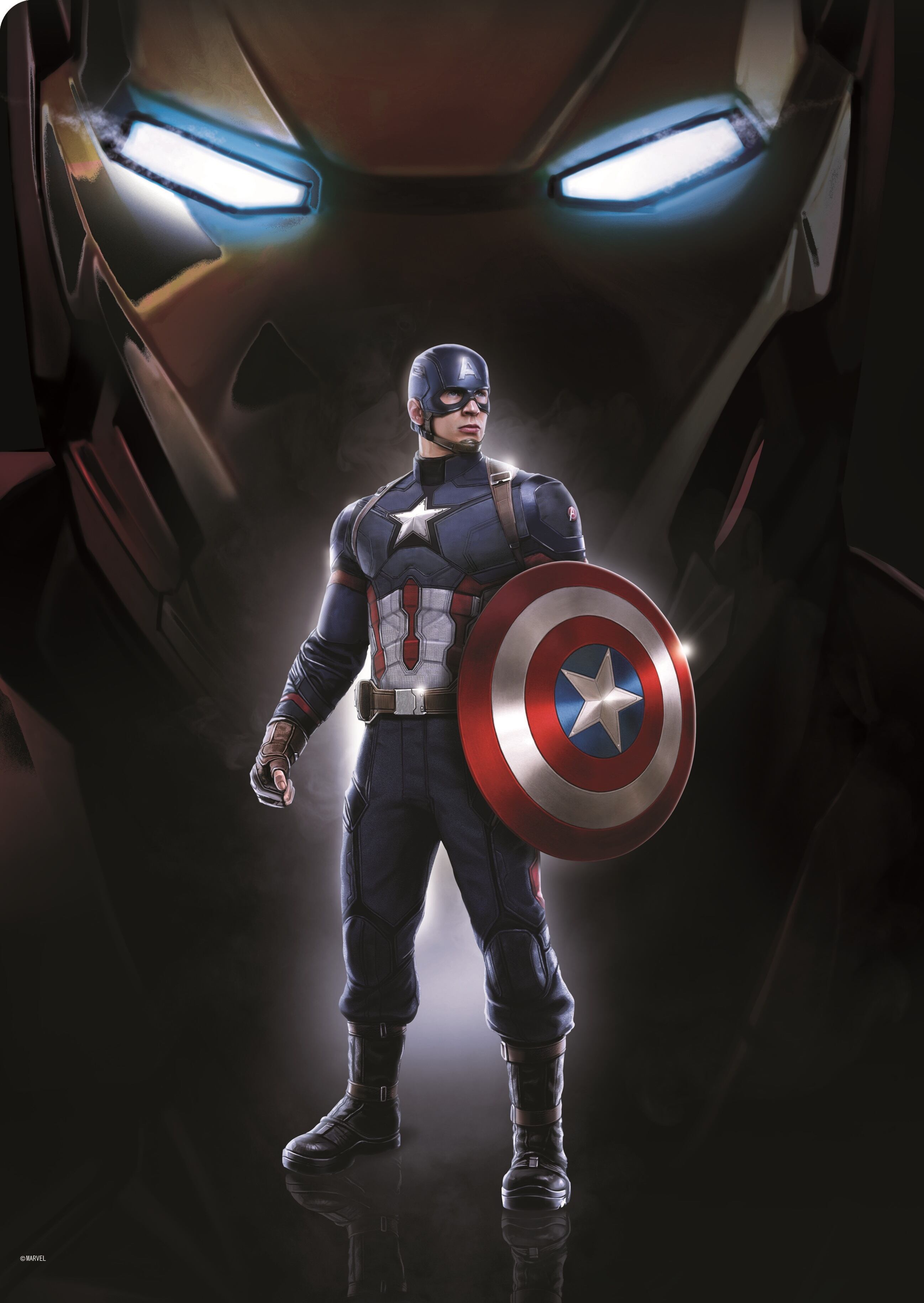 裏はアイアンマンを背に立つキャップが描かれてます。