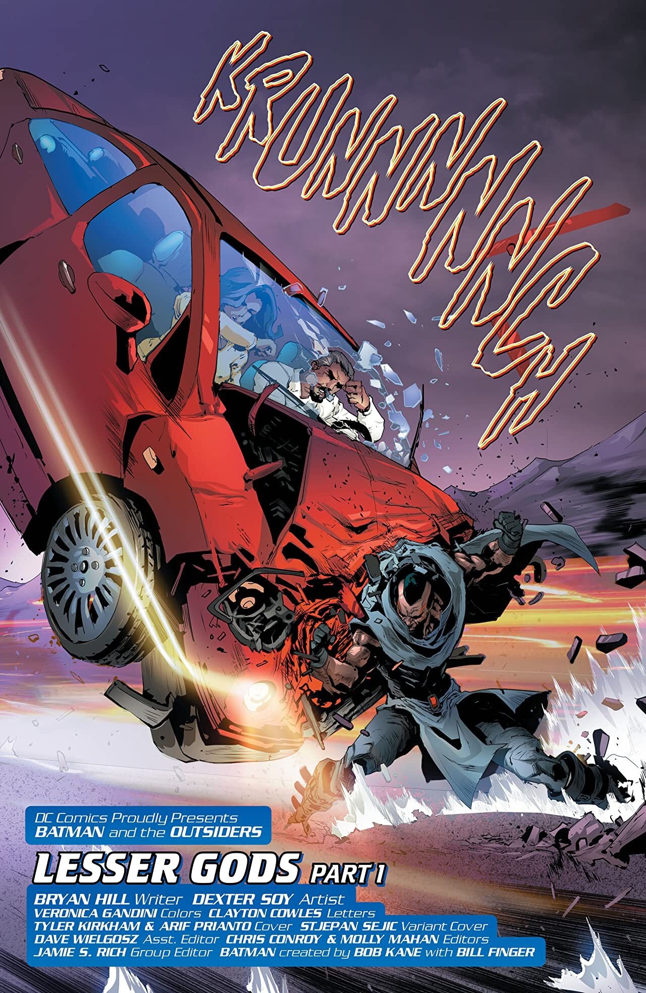Several years ago, Batman put the Barrera family of Gotham City into hiding after rescuing them from an organization called the Ark. Now all but one of them has turned up dead... and Batman needs to locate Sofia Barrera before the wrong people get their hands on her-and her surprising power! And when Black Lightning, Katana, the Signal, and Orphan find out what Batman is really up to, their true loyalties will be called into question. Collects Batman and the Outsiders #1-7.