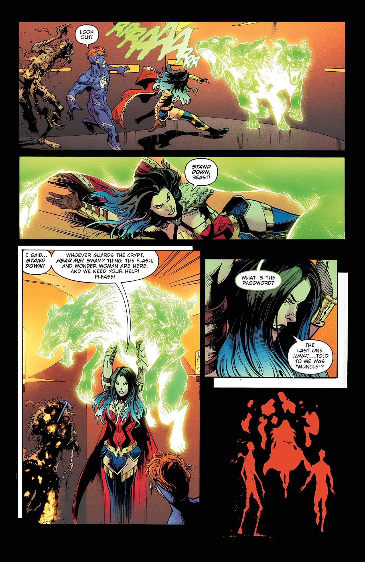 Get ready to scream! Wonder Woman roars across the horrifying Dark Multiverse landscape in the world’s most demented monster truck, with Swamp Thing riding shotgun! The two arrive at the ghoulish cemetery base of Batman and his army of zombies, but can the former friends stand each other long enough to form a plan and take back the planet? Plus, what’s Lobo doing in space?