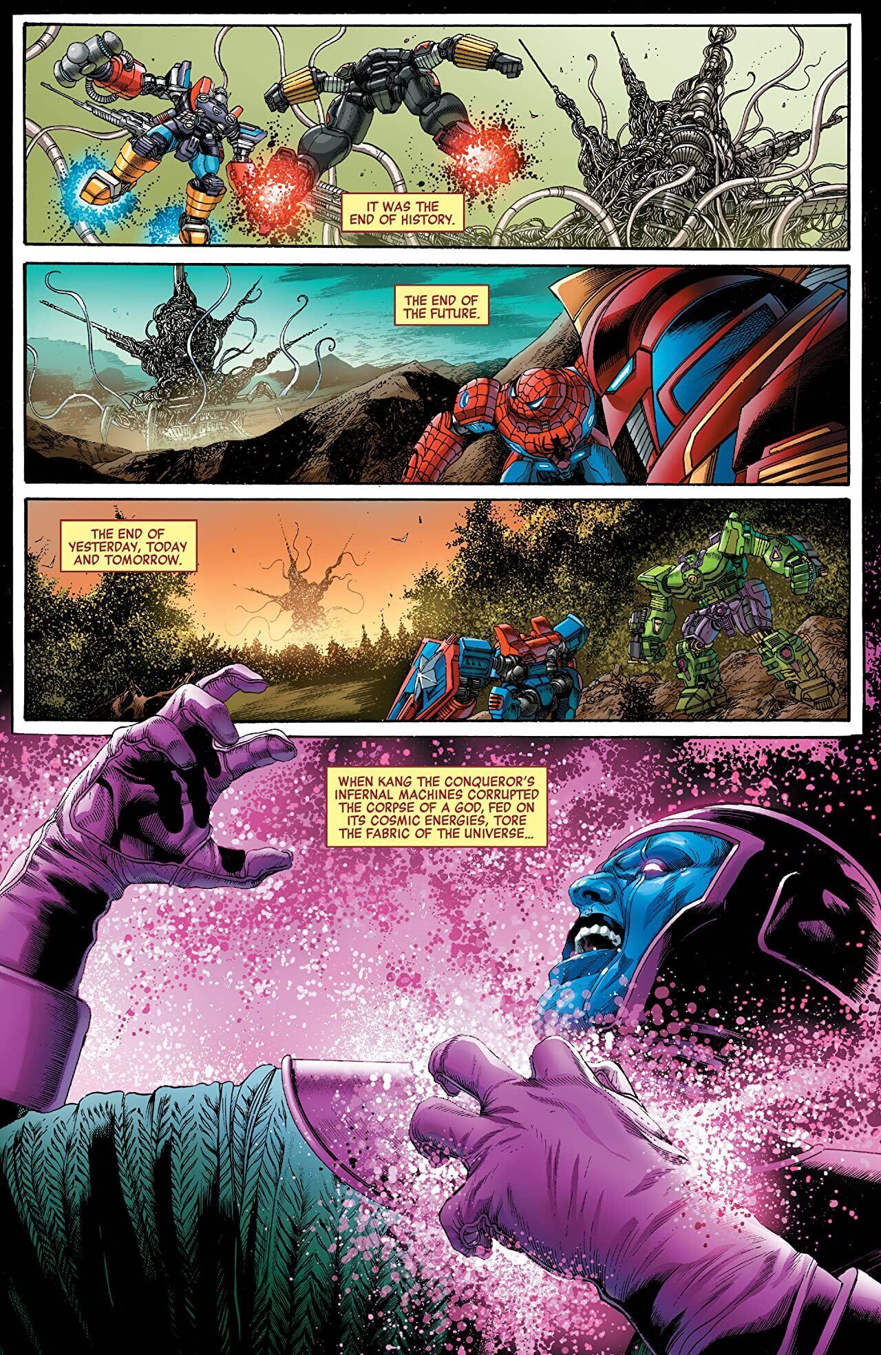 AN AVENGER HAS FALLEN! But the Avengers have no time to mourn their fallen friend — not when the world is ending. As their enemy’s masterplan unfolds and the planet erupts into chaos, the Avengers stand strong against endless enemies. But only a shocking new ally can help them to turn the tide. For if the Avengers fall...so too does Earth.