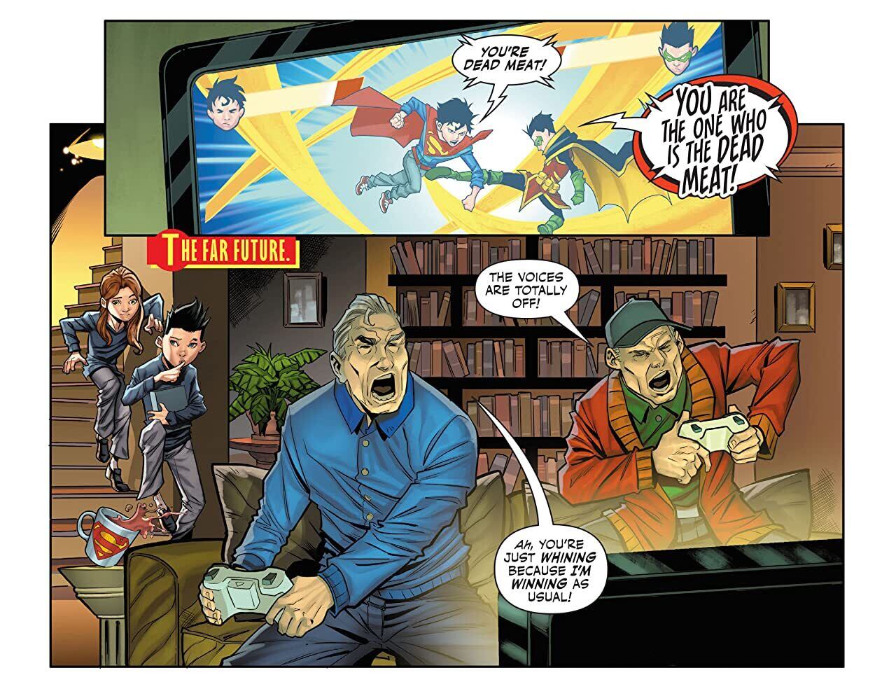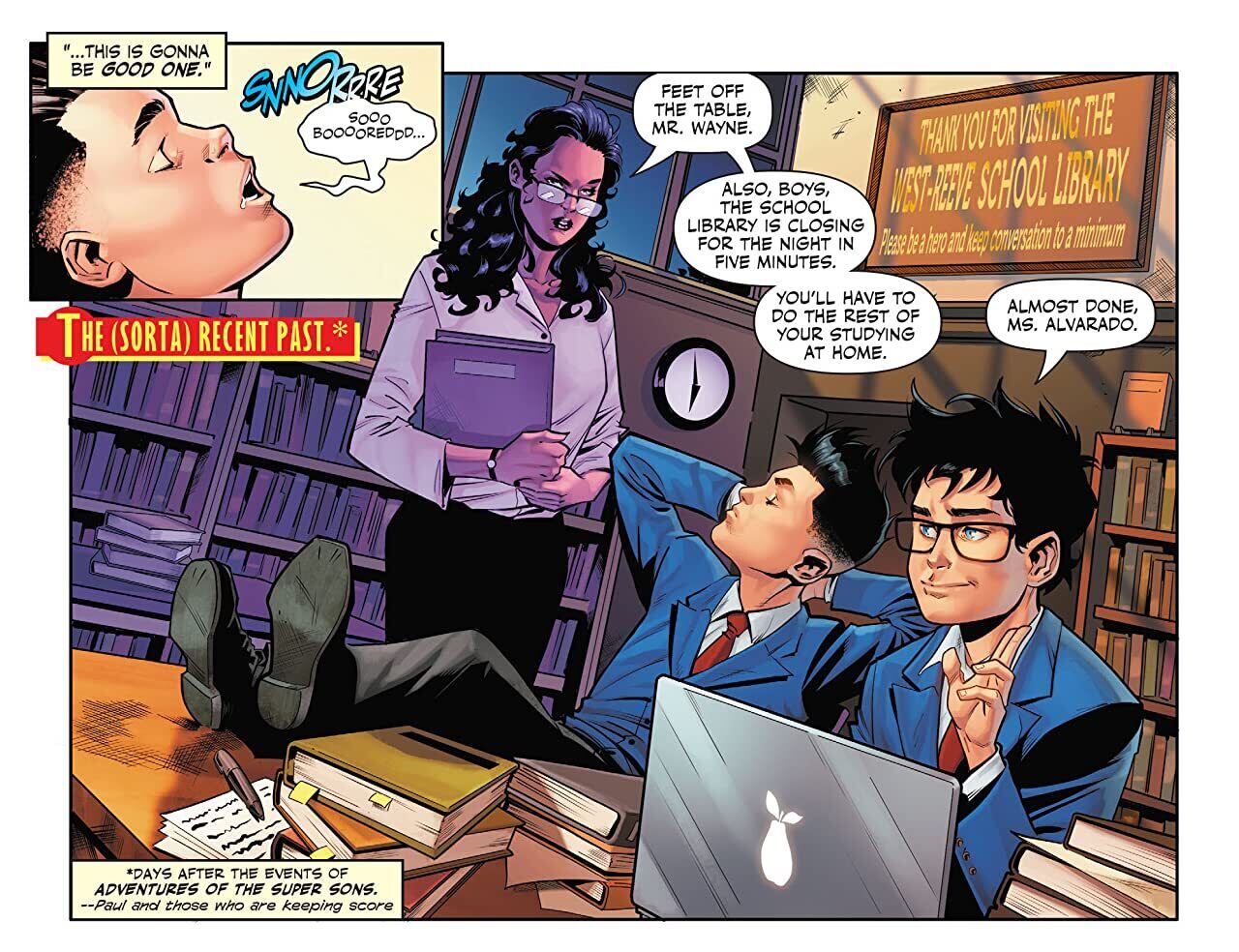 The boys are back! Picking up where the sensational Adventures of the Super Sons left off, the sons of Batman and Superman are back in the spotlight and ready to give evil a good spanking. But are Robin and Superboy in over their heads this time? A mysterious woman from beyond time has appeared to the DCU’s favorite sons, and her arrival heralds certain doom (that’s a hint, everyone) of things to come! In fact...it seems she’s sent the boys on a bogus journey that they’ve already...returned from? Huh? What did the boys learn when they were whisked away? Why on earth do they have to save the Flash from instant death? Tune in for the first chapter in the most epic odyssey Robin and Superboy have ever been on!