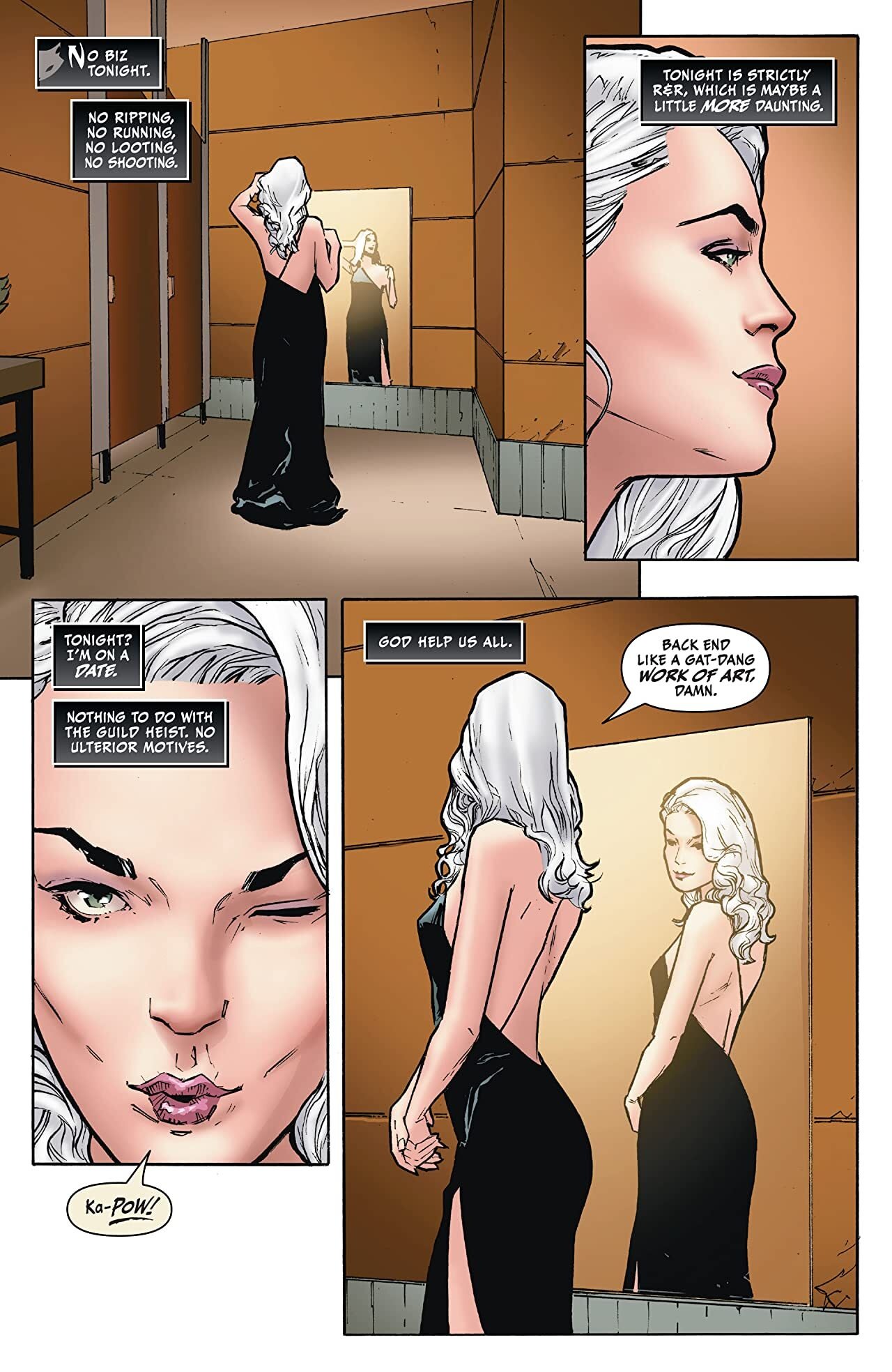 The Black Cat is back and better than ever! The Thieves Guild of New York has kidnapped Felicia Hardy’s mentor in crime, the Black Fox; to get him back, she’ll have to get through an army of ninjas and a cabal of wizards! Prepare for the Black Cat’s final showdown against the Guild and their leader Odessa Drake! Then, when Felicia needs to get someone she loves out of the city immediately, can she trust the Beetle to help? And a trip to Madripoor puts the Black Cat at odds with Wolverine! Will Logan and Felicia keep their claws sheathed long enough to learn who’s pulling both their strings? Plus: Why is the Black Cat proposing marriage to Spider-Man? Is it true love, or just part of her next big scheme?