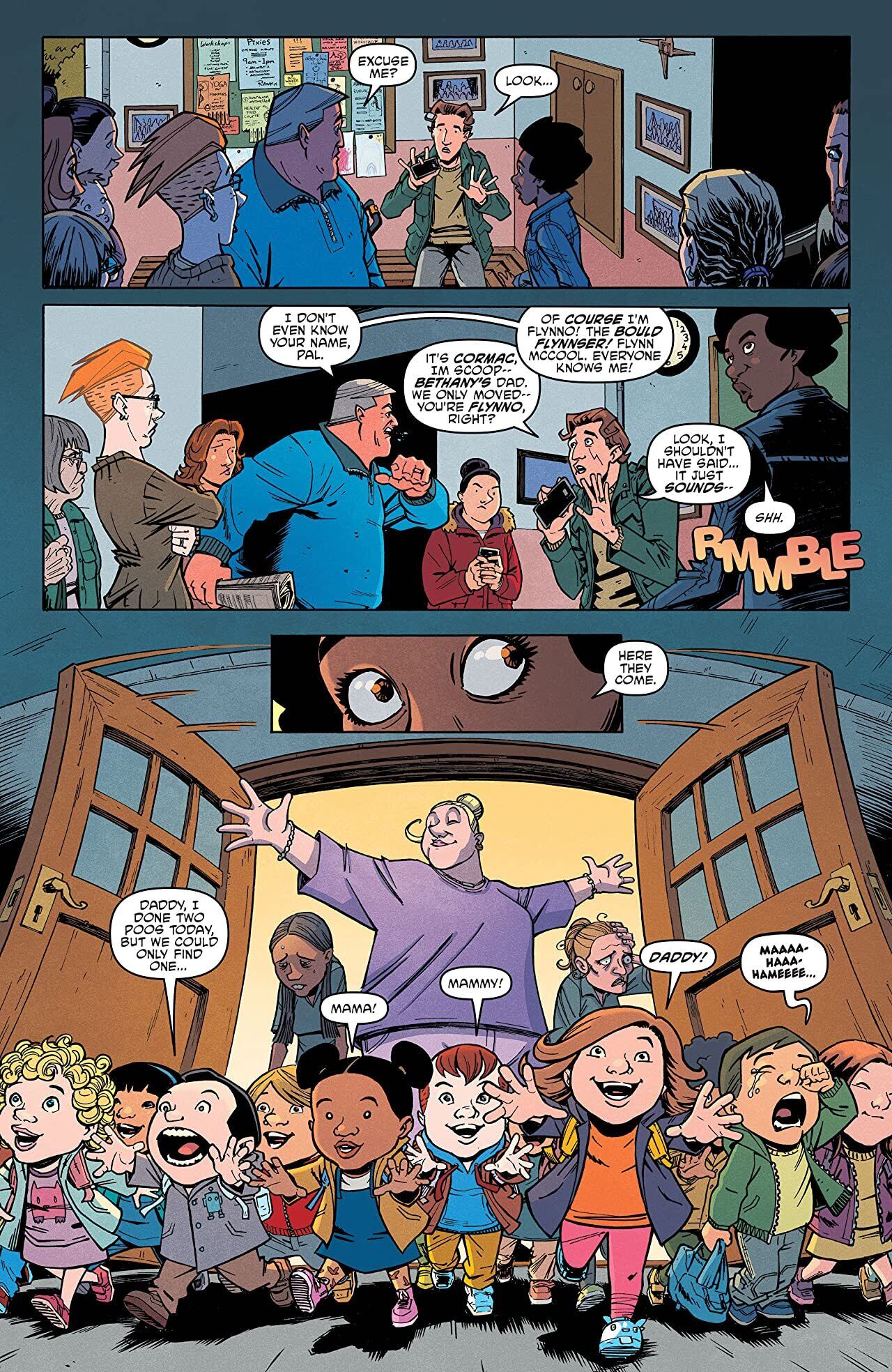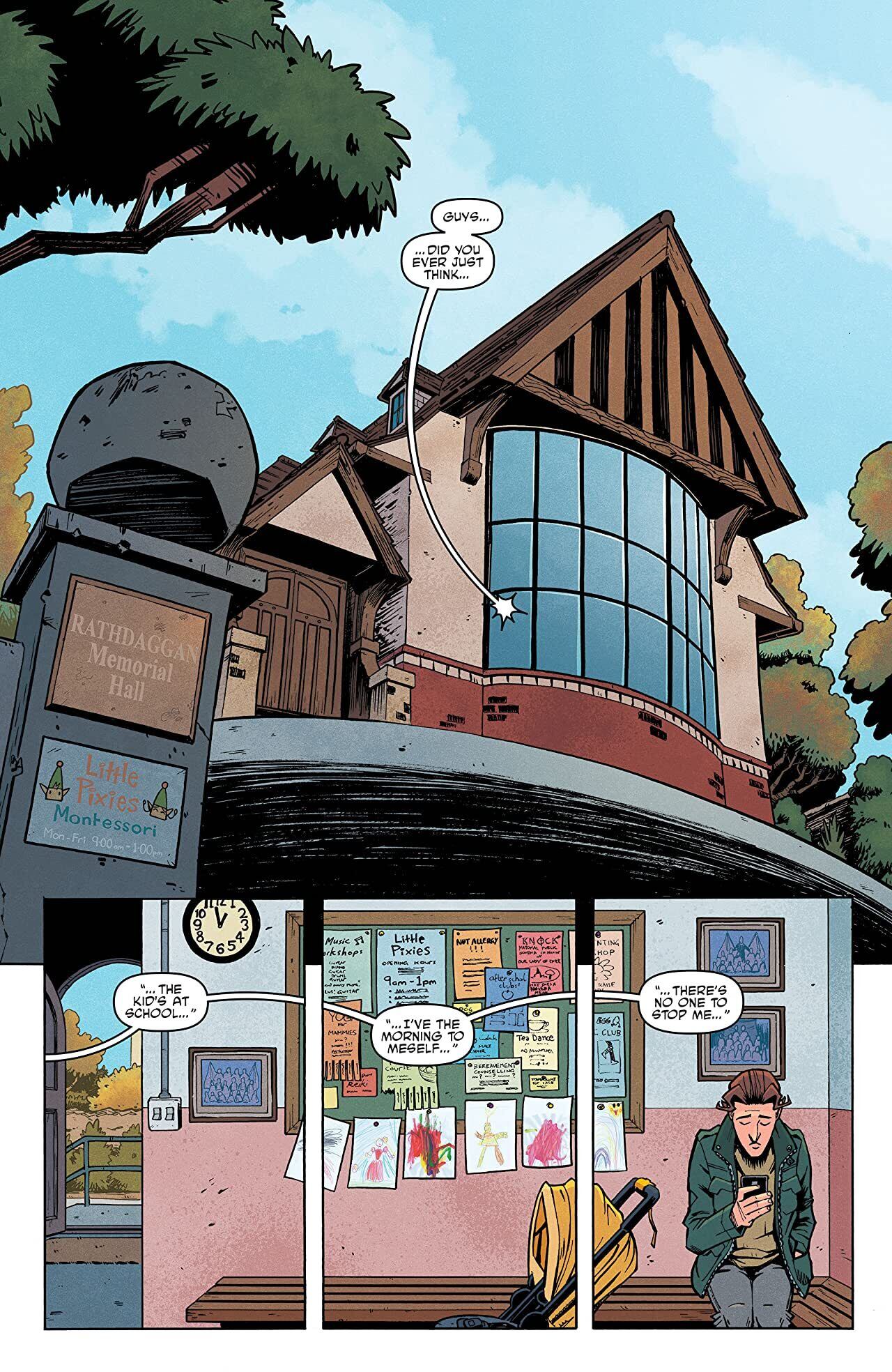 TO-DO LIST: Drop kids at preschool/ Grab coffee with other parents/ Go ghost-hunting in woods/ Fight demonic entity/ Collect kids/ Naptime. With their kids away on a field trip, a group of parents disturbs an ancient evil buried beneath the old Church Hall, unearthing a decades-old mystery about a missing child, and inviting something... hungry into their lives. Suddenly, their mornings go from playdates and peanut allergies, to a battle for the souls of one broken family—and one child in particular. What scares you the most: fighting demons, or letting your kids down? Nick Roche (Transformers: The Wreckers Saga, Spider-Man: Renew Your Vows) and Chris O’Halloran (Immortal Hulk, Ice Cream Man) have the answers.
