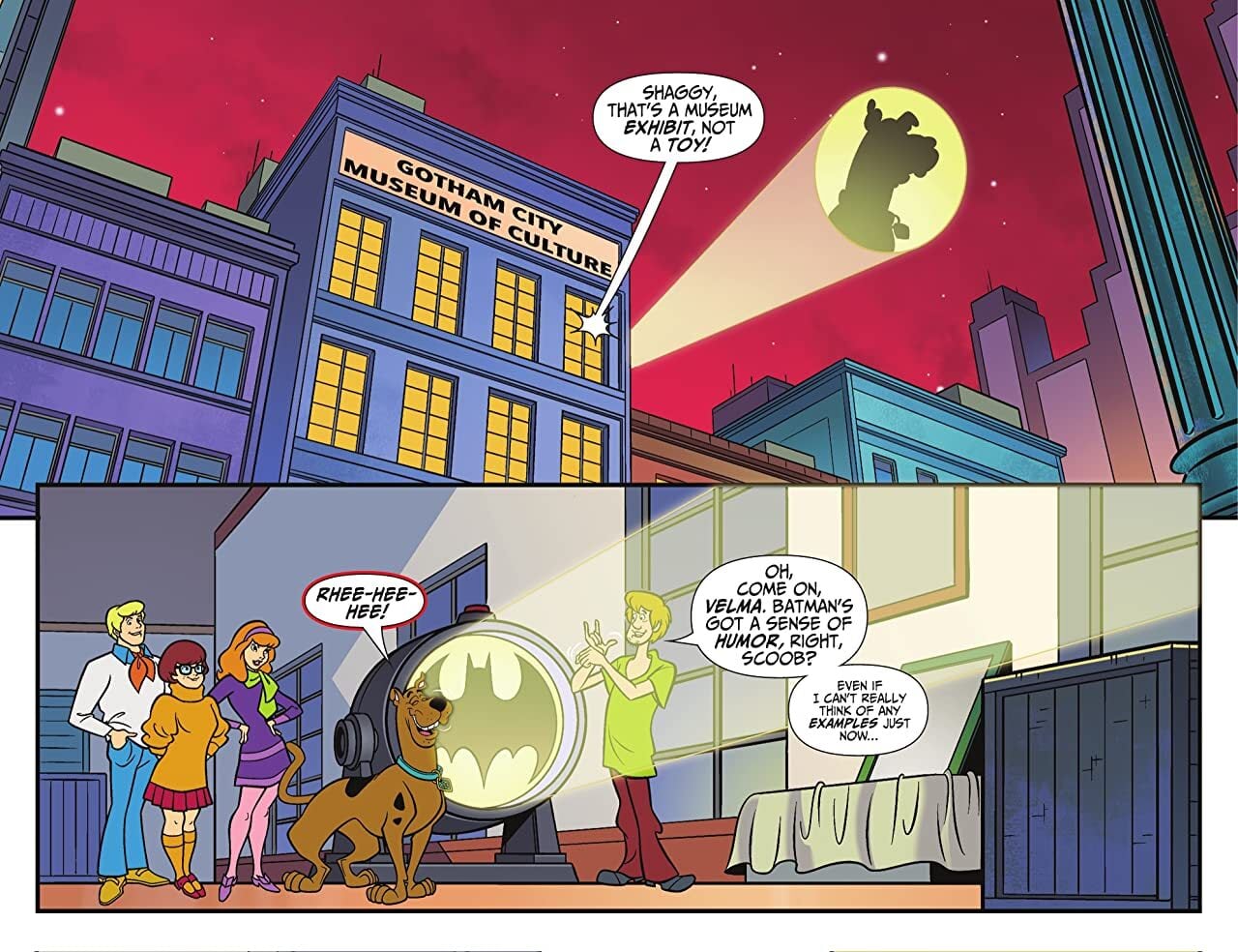 An all-new series teams the Dark Knight with Scooby-Doo and the sleuths of Mystery, Inc.! When Batman discovers his original purple gloves have gone missing, Velma, Shaggy, and Scooby-Doo travel back in time to Batman’s Year One to solve the case! Will this “Glove Story” have a happy ending?