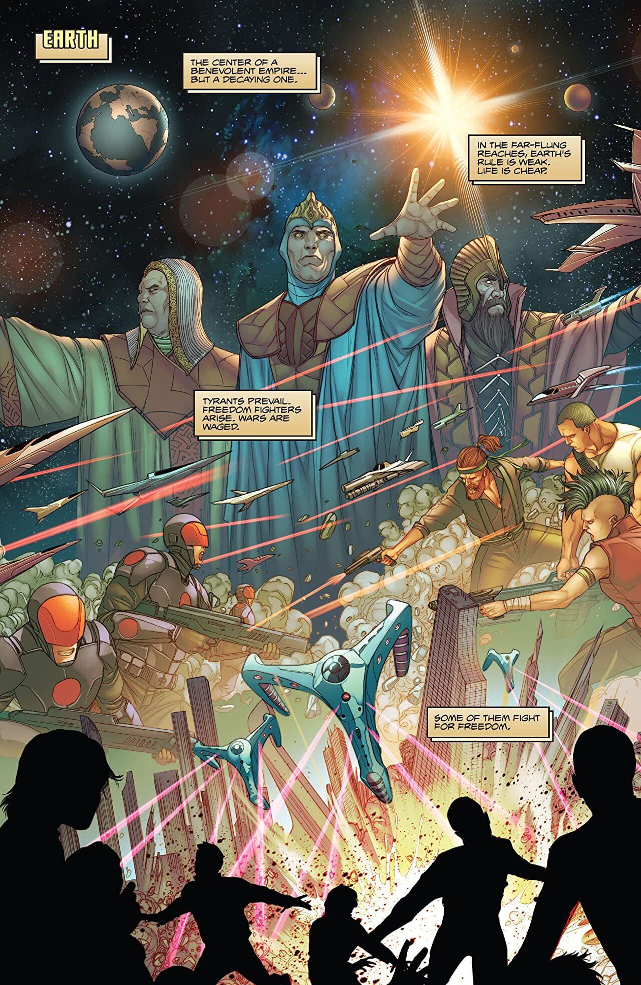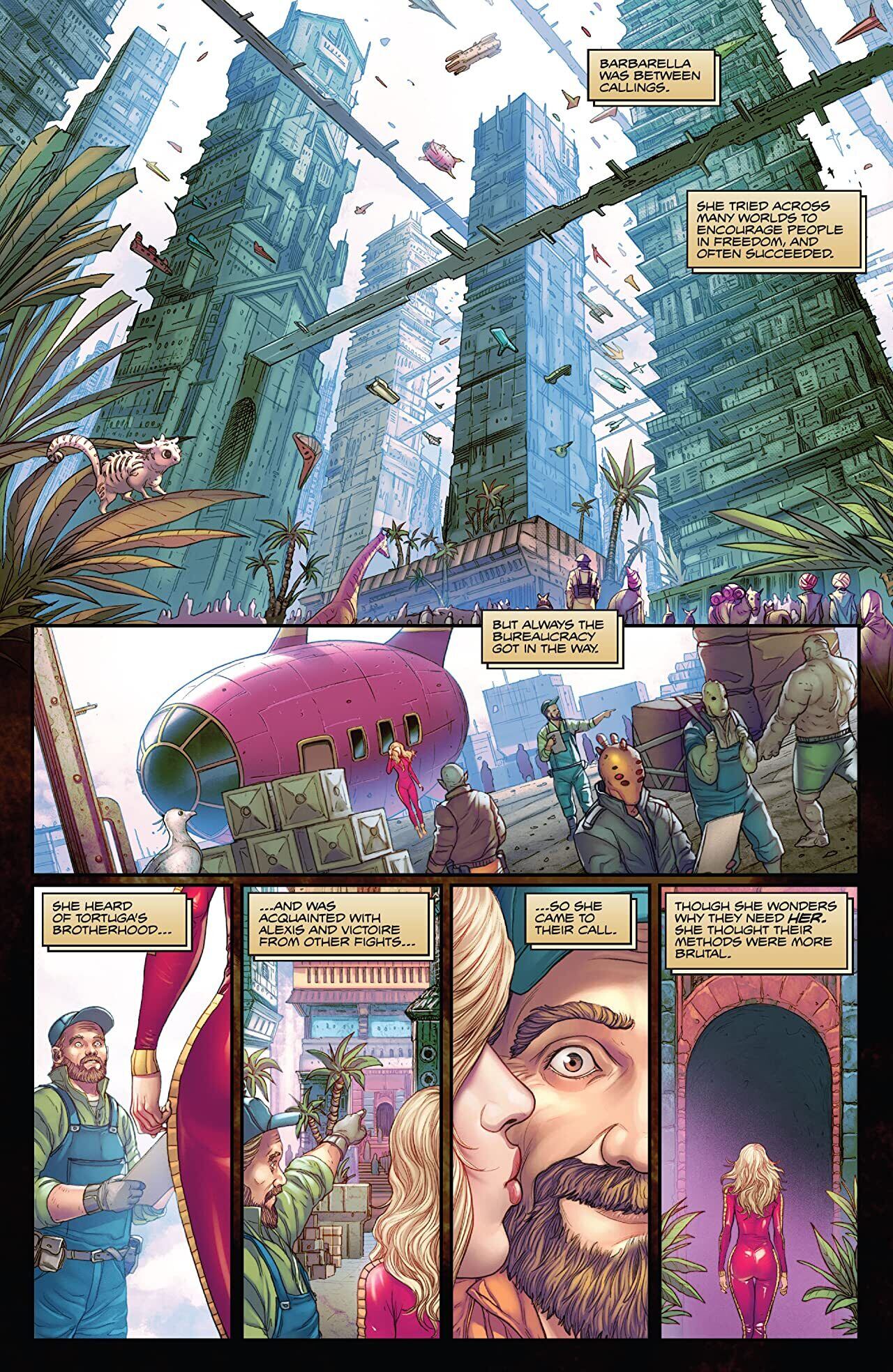 The Siren of Space returns for a series of all-new adventures by a dynamic new creative team! Multi-award winning author SARAH HOYT and rising star artist MADIBEK MUSABEKOV are at the controls as Barbarella leaves space dock on a new mission fraught with unseen layers of danger, duplicity and perhaps a dose of romance! Camelot is home to the rich and powerful class seeking escape from an increasingly crowded and decaying galactic empire. Desperate clandestine transmissions from an enslaved underclass bring Barbarella to investigate, uncovering secrets that lead to more secrets—and the distinct possibility that someone knew she was coming. High concept sci-fi meets the greatest aspects of the human soul in a series that will reveal wonders that both terrify and delight, plus covers by fan-favorites LUCIO PARILLO, DERRICK CHEW, BRIAN BOLLAND and more!