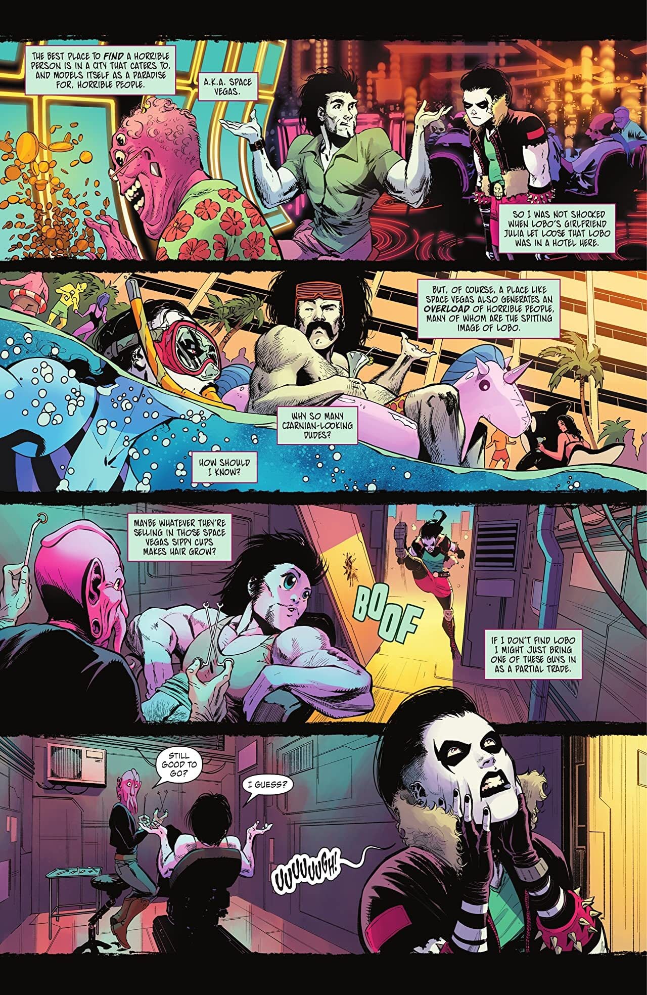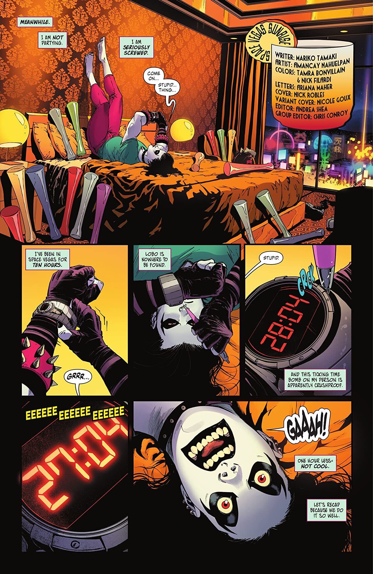 A madcap bounty hunt across the galaxy is nothing without a little ROMANCE! Crush’s search for Lobo is getting pretty demoralizing, so when a sad alien girl mistakes Crush for her blind date…why NOT go along with it? And relive every bad relationship choice Crush has ever made? And still find Lobo before her prison monitor blows her to bits?