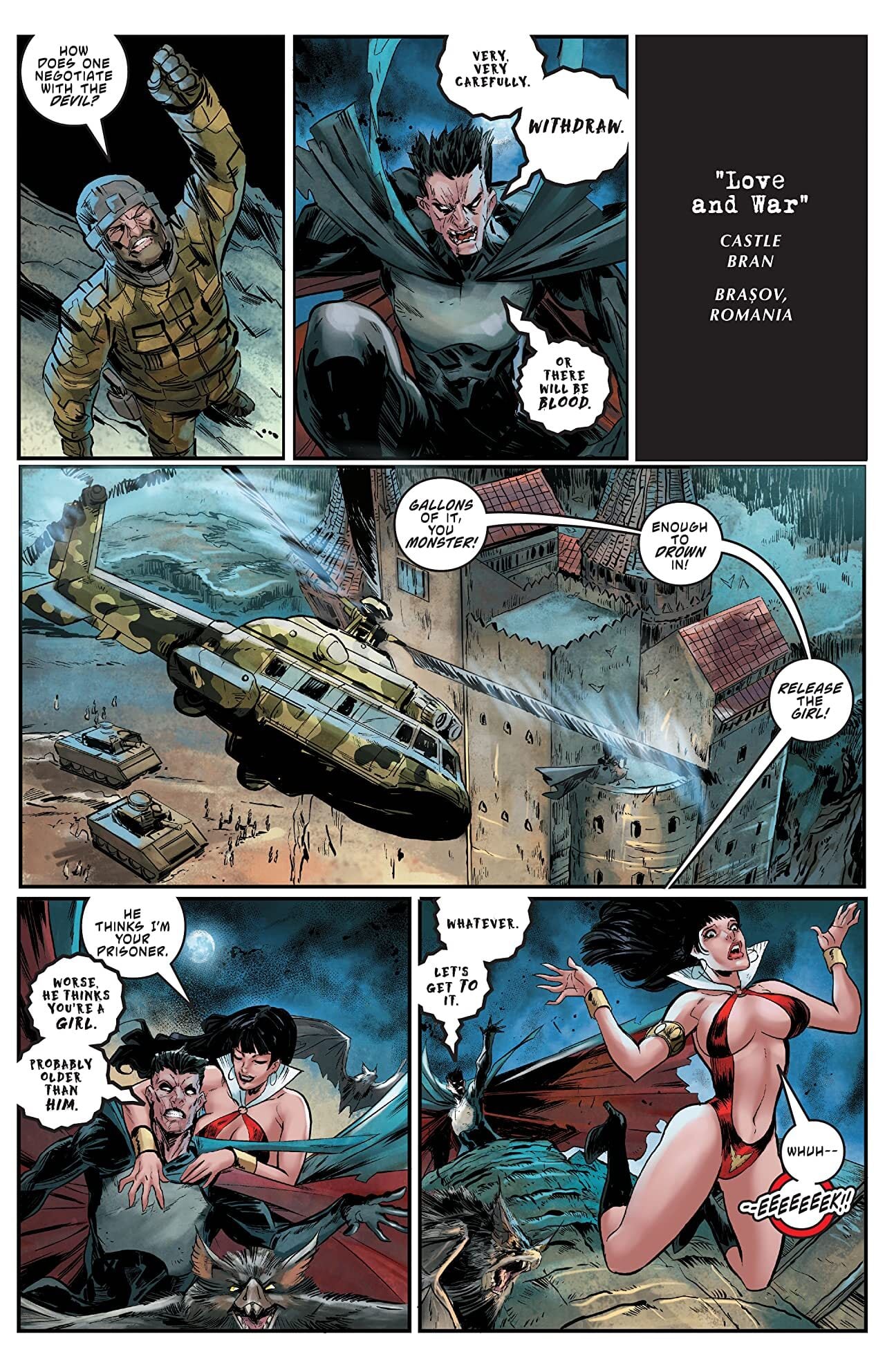 The honeymoon begins! The adventure of several lifetimes begins as Vampirella and new husband Matt journey to Castle Dracula in Transylvania in an attempt to cheat fate by preventing both a high-tech virus and an ancient curse from using Matt’s body to resurrect the deadliest threat the world has ever known. Meanwhile secrets and mystery grow around Vampi’s spouse, who may not be nearly as innocent as he appears to be. Join us for this new series debut by twice-bitten writer Christopher Priest and bloodthirsty artist Donny Hadiwidjaja!