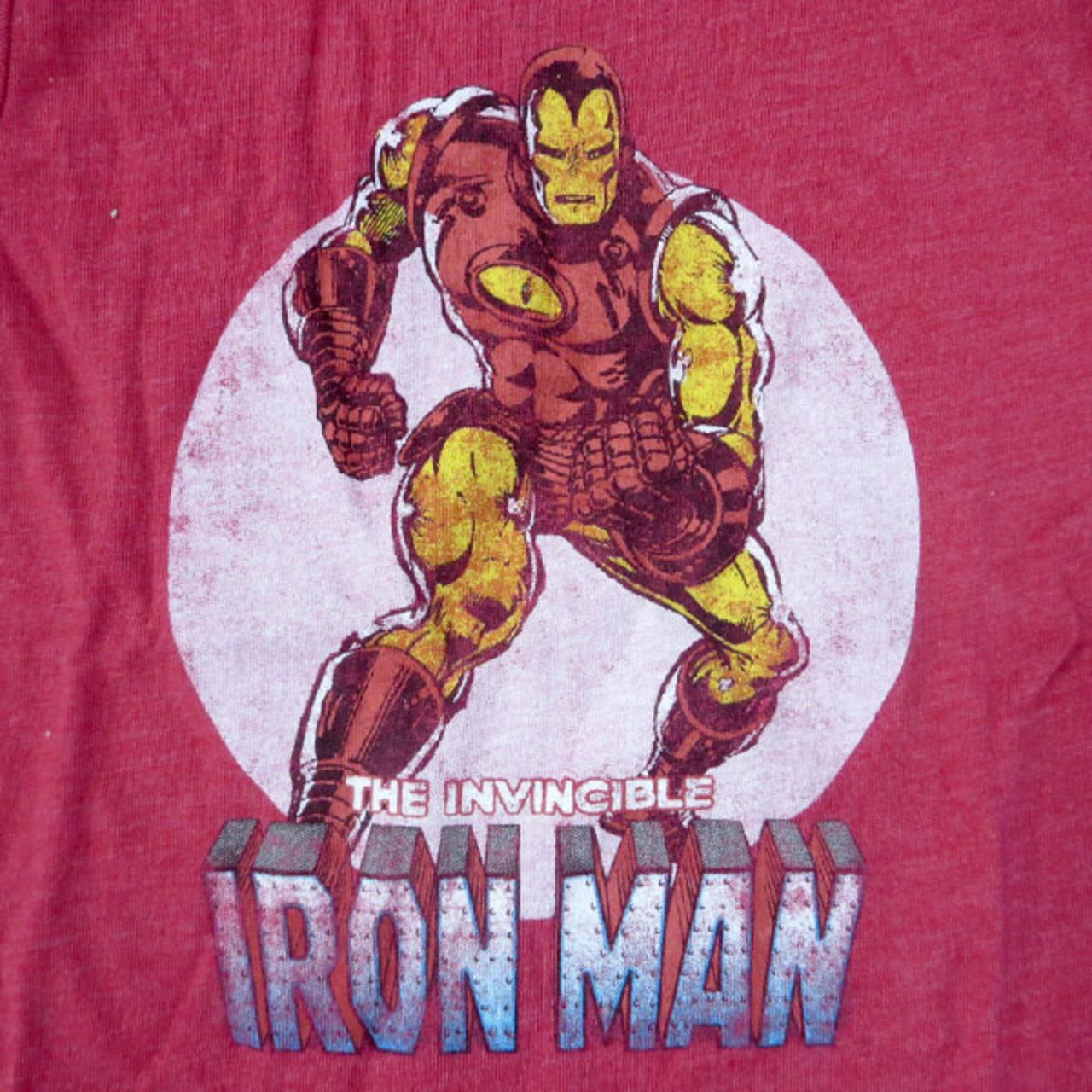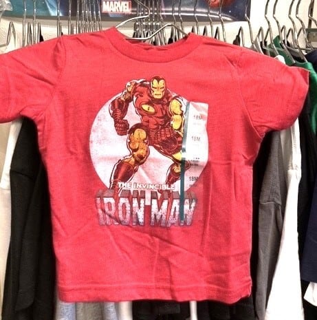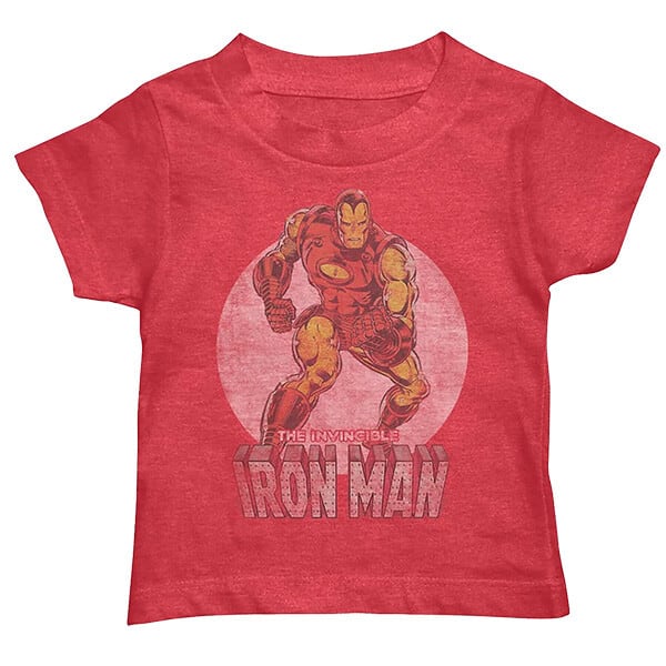 レッドボディにコミック版アイアンマンがプリントされたキッズTシャツです。